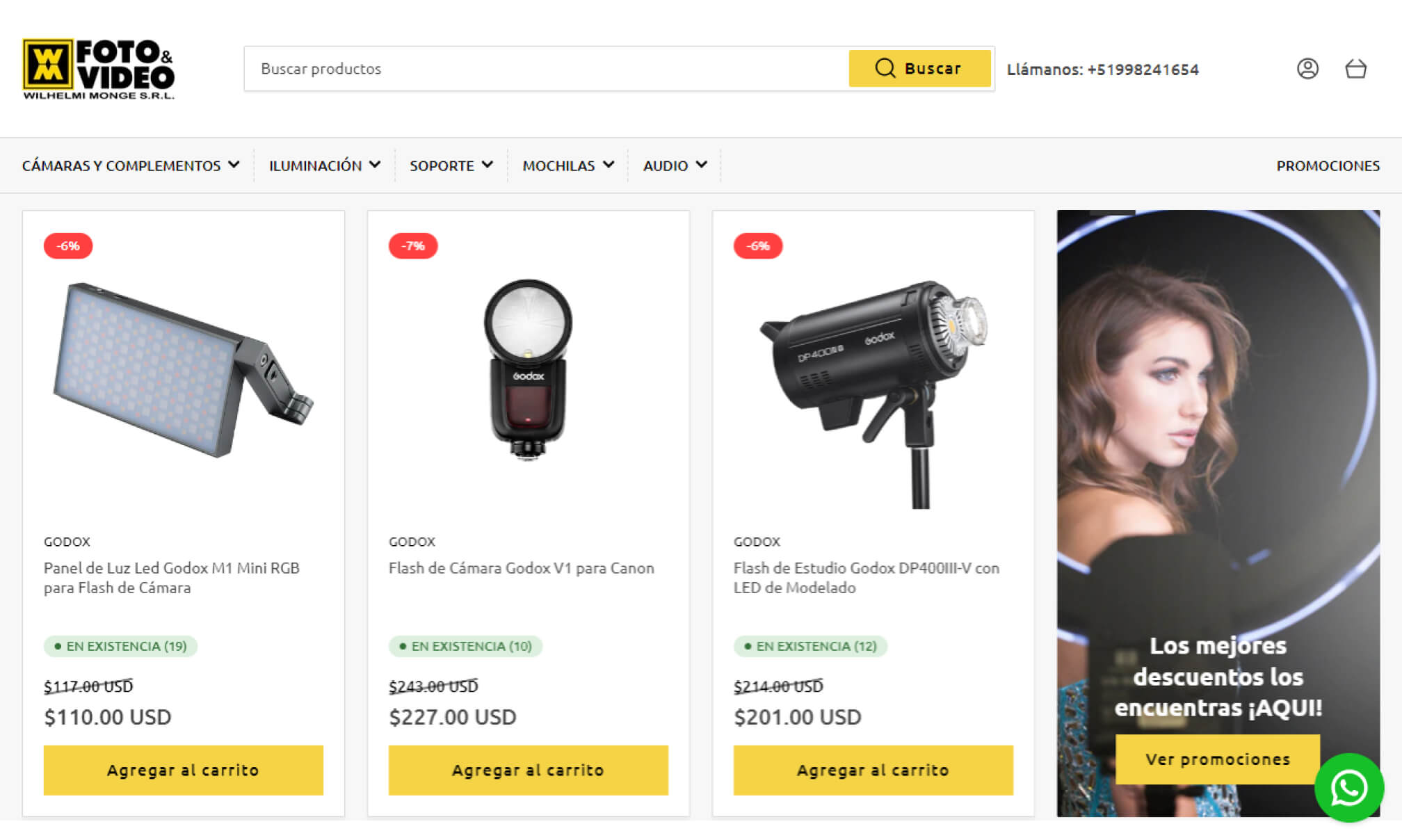 Empresa líder especializada en la venta de equipos fotográficos y audiovisuales en el Perú.